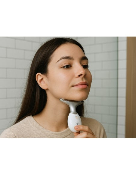 El reductor de papada TOTAL FACE PRO puede utilizarse no sólo en el cuello sino en todo el rostro.